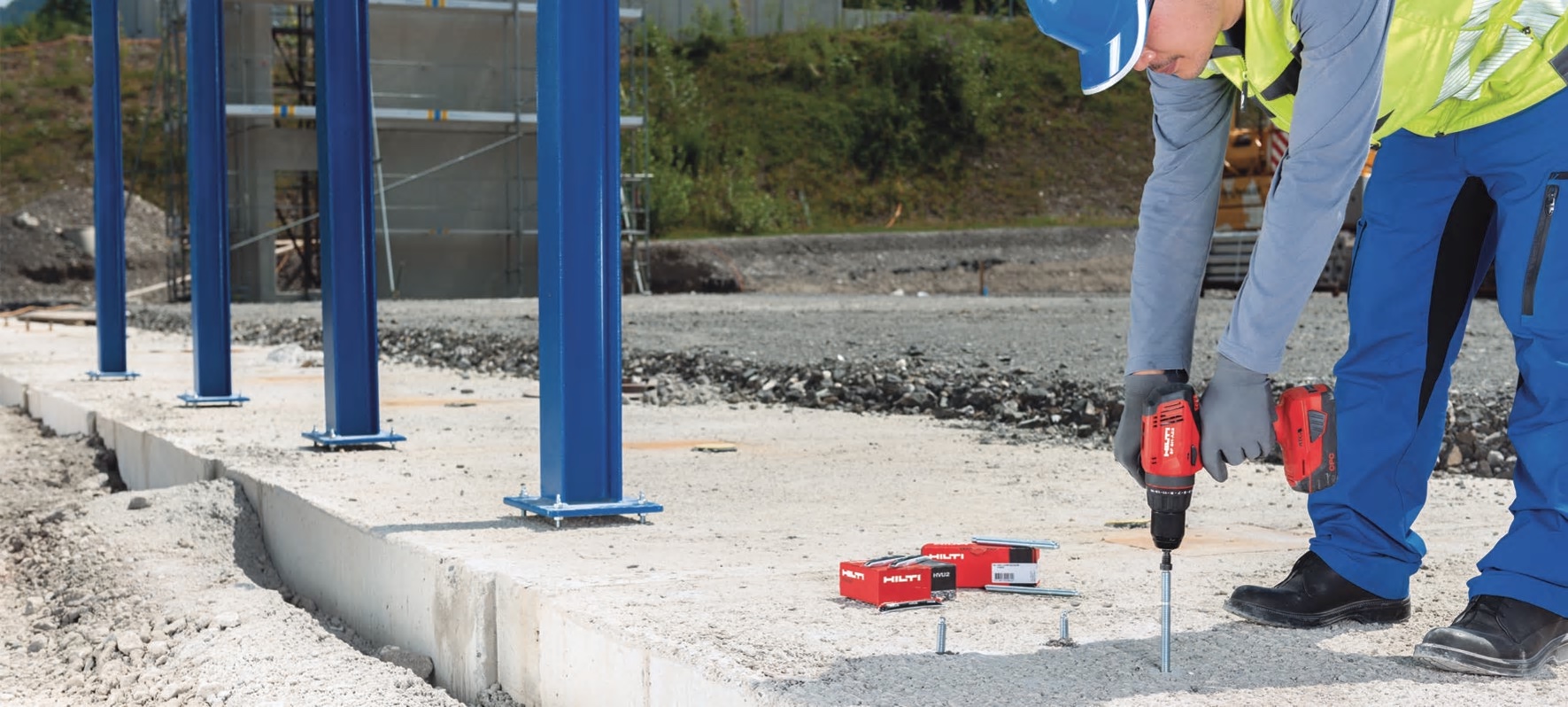 - Αγκύρωση χαλύβδινων κατασκευών (π.χ. ικριώματα, προστατευτικά κιγκλιδώματα, φράχτες και πύλες)