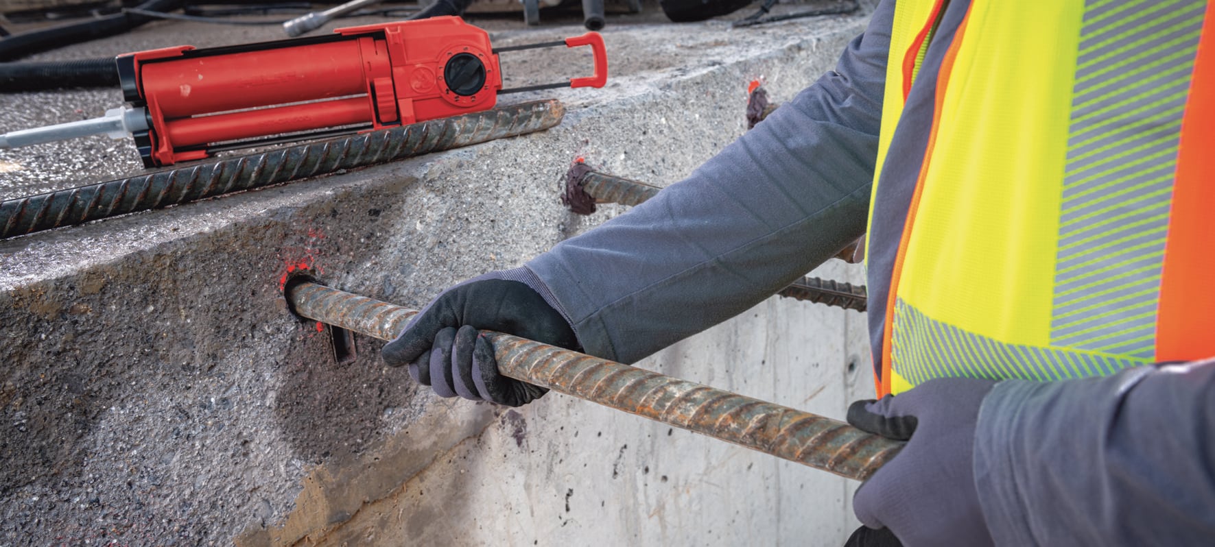 - Βελτιστοποιημένο για ράβδους οπλισμού εκ των υστέρων εγκατάστασης – μεγαλύτερος χρόνος εργασίας για εφαρμογές με ράβδους οπλισμού σε στεγνό σκυρόδεμα, νωπό σκυρόδεμα ή οπές διάτρησης γεμισμένες με νερό (ανάλογα με τις προδιαγραφές της ράβδου και τις εγκρίσεις), με μεγάλο εύρος θερμοκρασιών λειτουργίας (-10 έως +40°C)